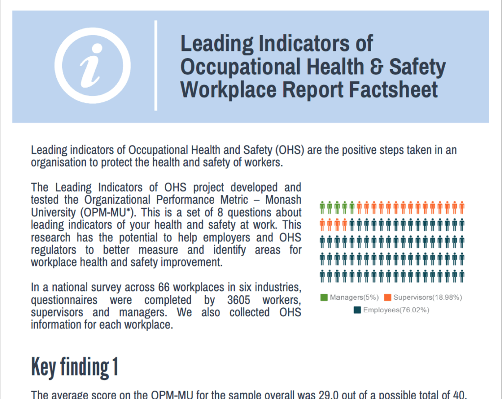 This report presents a summary of all stages of the OHS Leading Indicators Project and information about the Organizational Performance Metric – Monash University (OPM-MU).